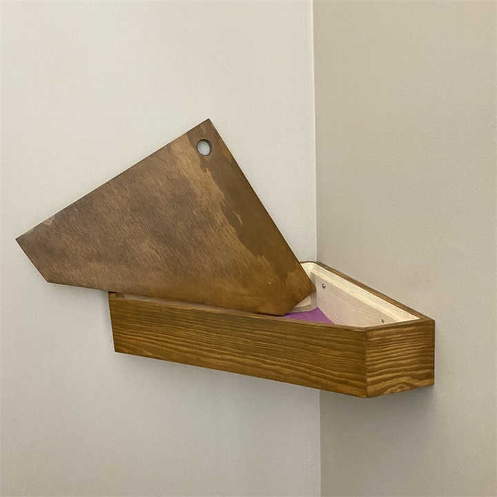 Wall Mounted Corner Floating Shelves Wood Rustic Handmade Storage Display Shelves with Hidden Storage