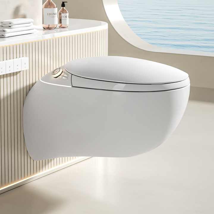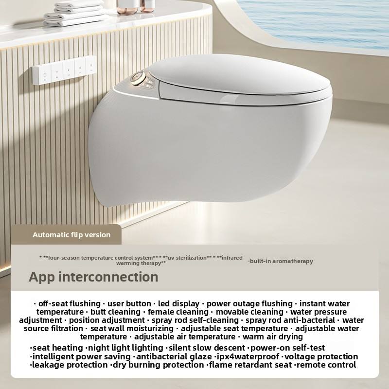 WC mural en céramique encastré en forme d'œuf avec réservoir d'eau intégré, chasse d'eau automatique, suspendu, intelligent, télécommande
