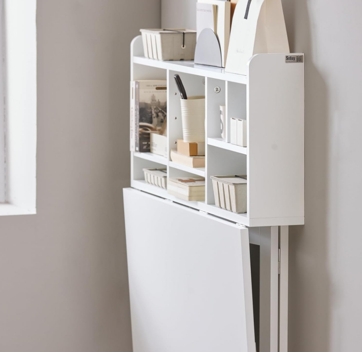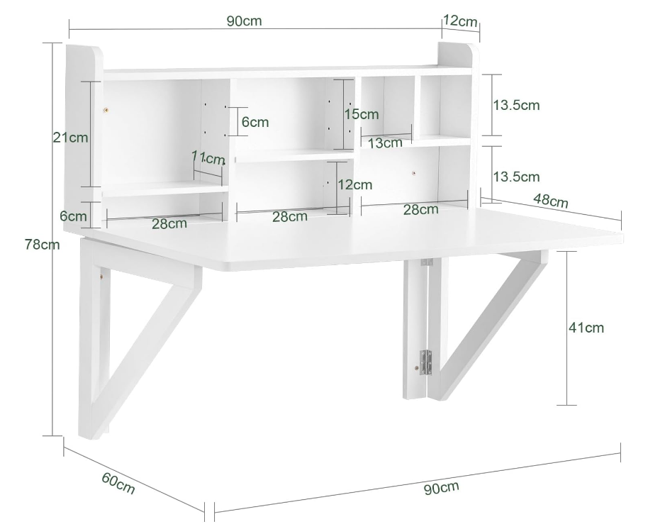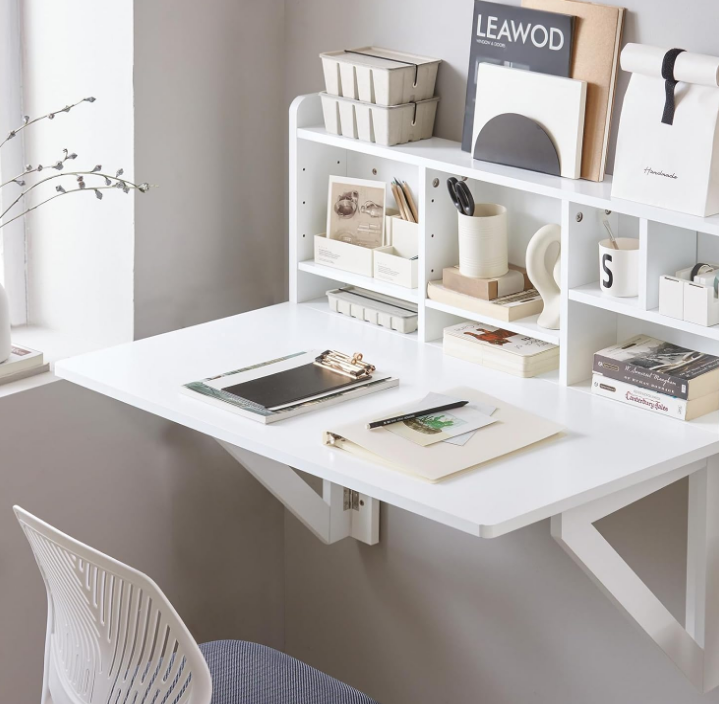 Table pliante murale avec plateau rabattable, bureau flottant à tréteaux, poste de travail informatique avec compartiments de rangement