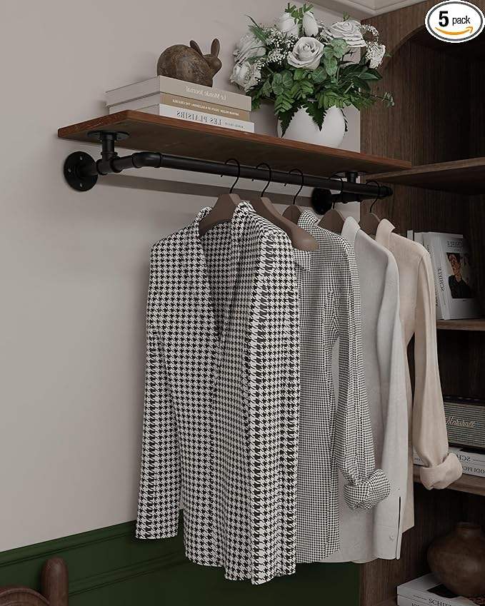 Porte-vêtements mural avec étagère en bois, support robuste pour suspendre les vêtements, barre de suspension multifonctionnelle, rangement gain de place pour placard