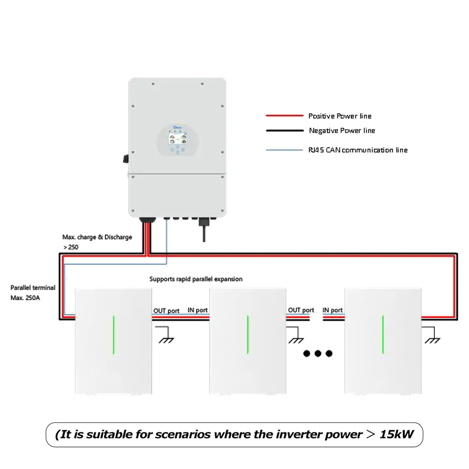 Batterie au lithium murale pour le stockage d'énergie domestique 51.2V 208Ah 6000cycles avec port de communication CAN pour un usage domestique LV