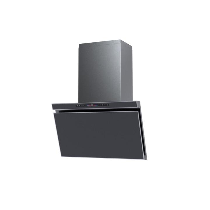 Hotte de cuisine inclinée murale avec commande élégante et deux filtres en maille d'aluminium pour l'extraction des vapeurs, des odeurs et de la fumée