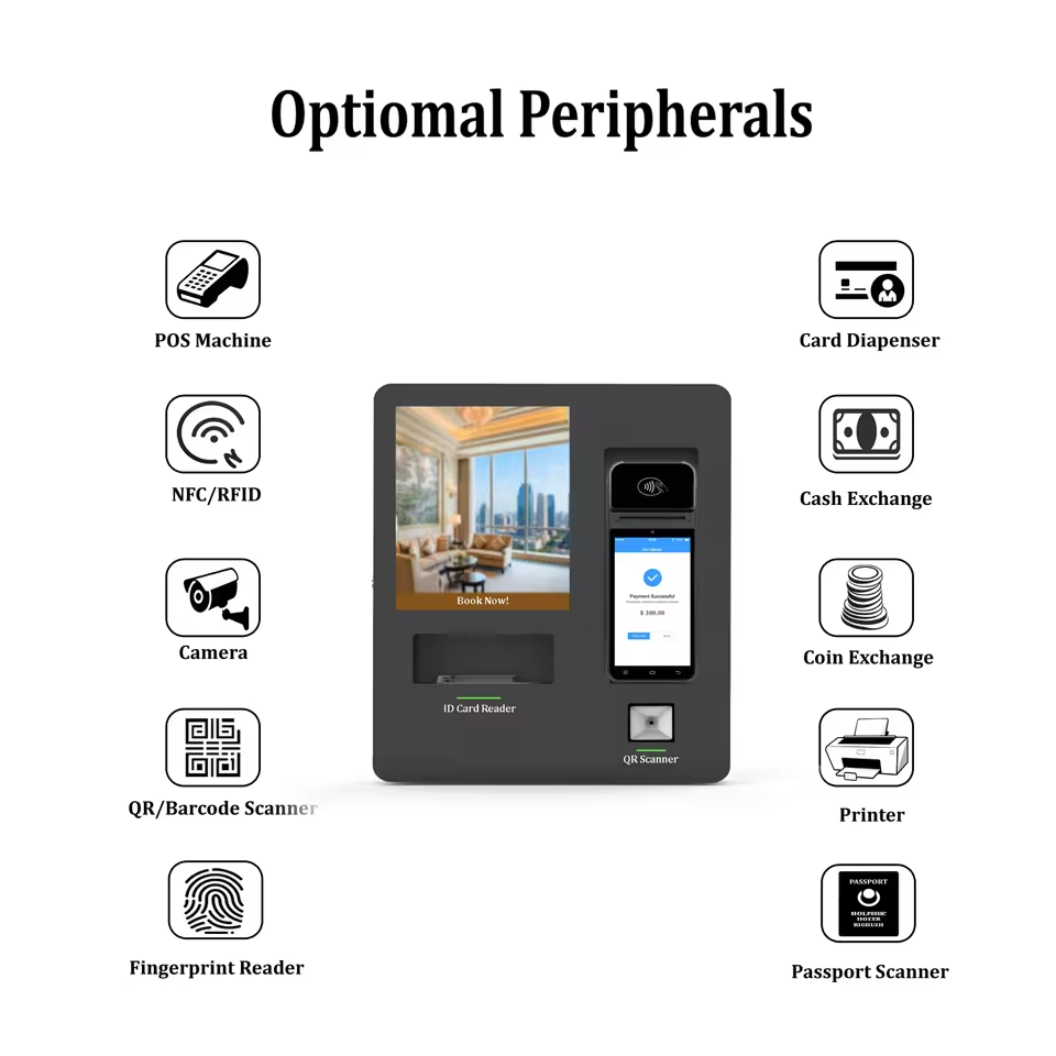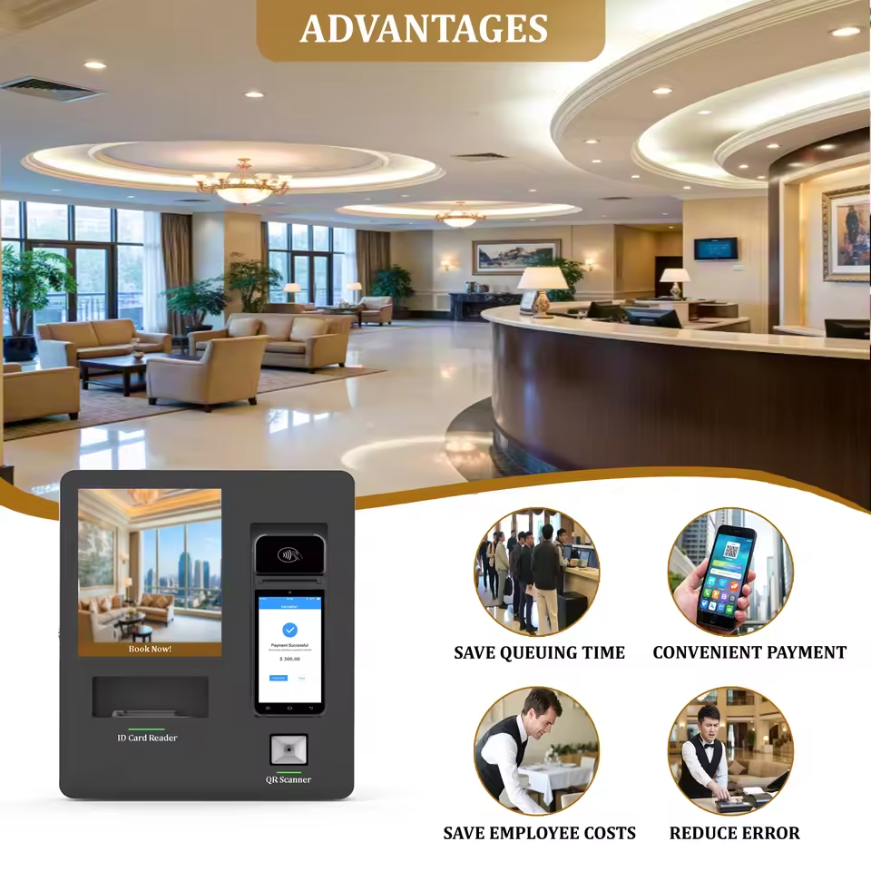 Kiosque interactif fixé au mur de paiement de libre-service avec le scanner de passeport pour l'enregistrement d'hôtel