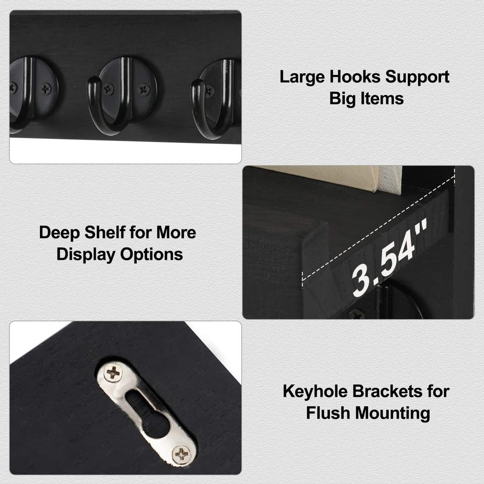 Porte-clés mural avec étagère, 5 crochets, organisateur d'entrée en bois rustique, crochets pour manteaux et porte-lettres pour couloir et cuisine