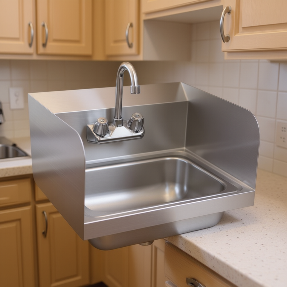 Wall Mounted Kitchen Sink With Faucet Single Bowl Rectangular Brushed Stainless Steel Industrial Design