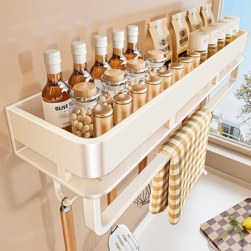 Étagère de rangement de cuisine monocouche blanc cassé, 40 cm, avec crochets