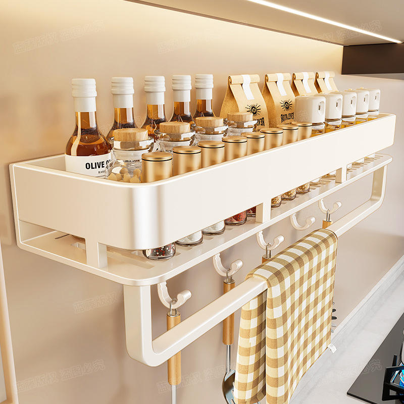 Panier de rangement mural rectangulaire pour cuisine, étagère suspendue pour huile, sel, sauce soja, vinaigre, installation sans perçage