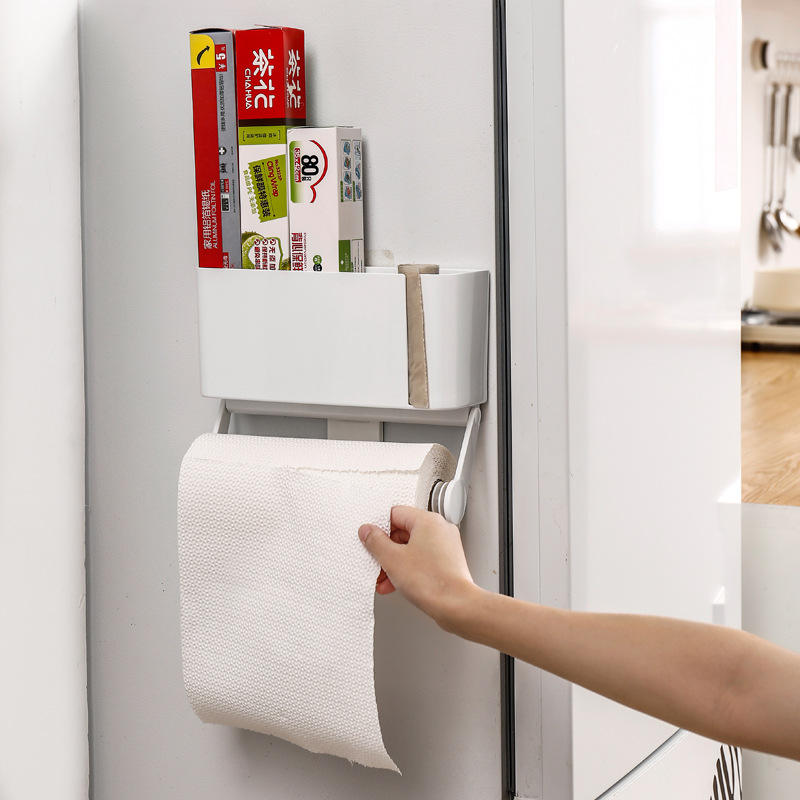 Support mural de rangement de cuisine rectangulaire sans perçage pour organiseur de papier essuie-tout, de contenants alimentaires et de film alimentaire