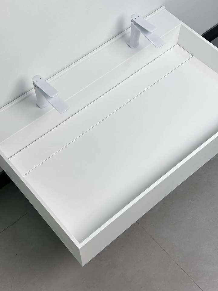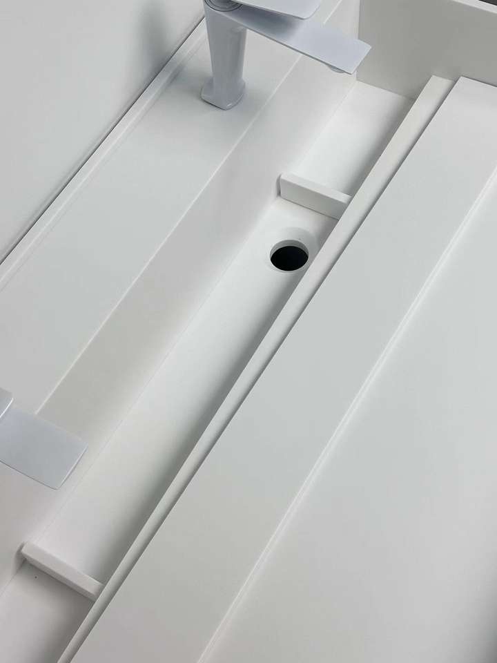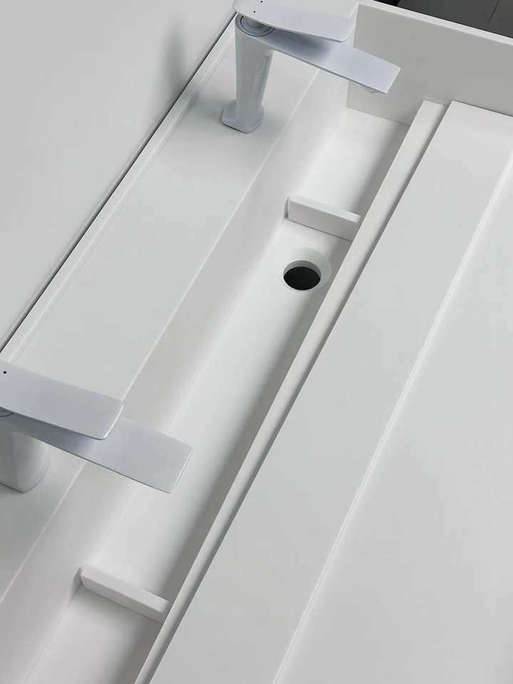 Évier intégré en pierre artificielle acrylique de grand lavabo carré fixé au mur avec l'usine de drain rabattable directe