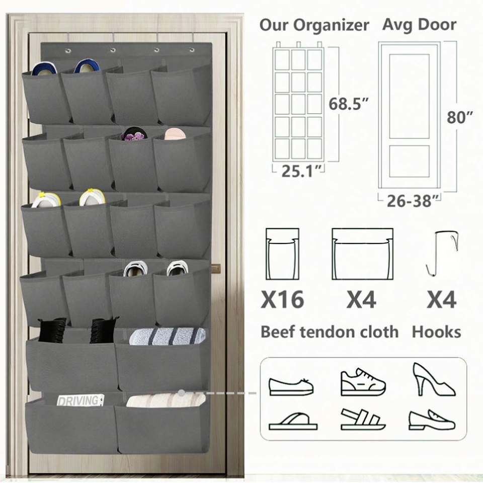 Organisateur de chaussures à suspendre au-dessus de la porte