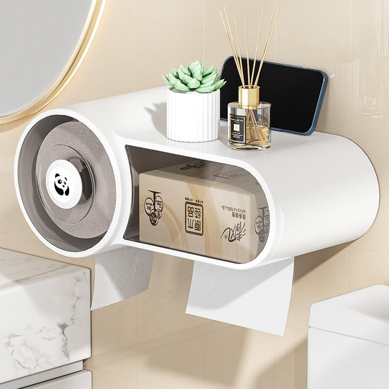Boîte de rangement murale étanche pour papier toilette Panda, support de rouleau de papier non perforé, accessoires de salle de bain et de toilettes