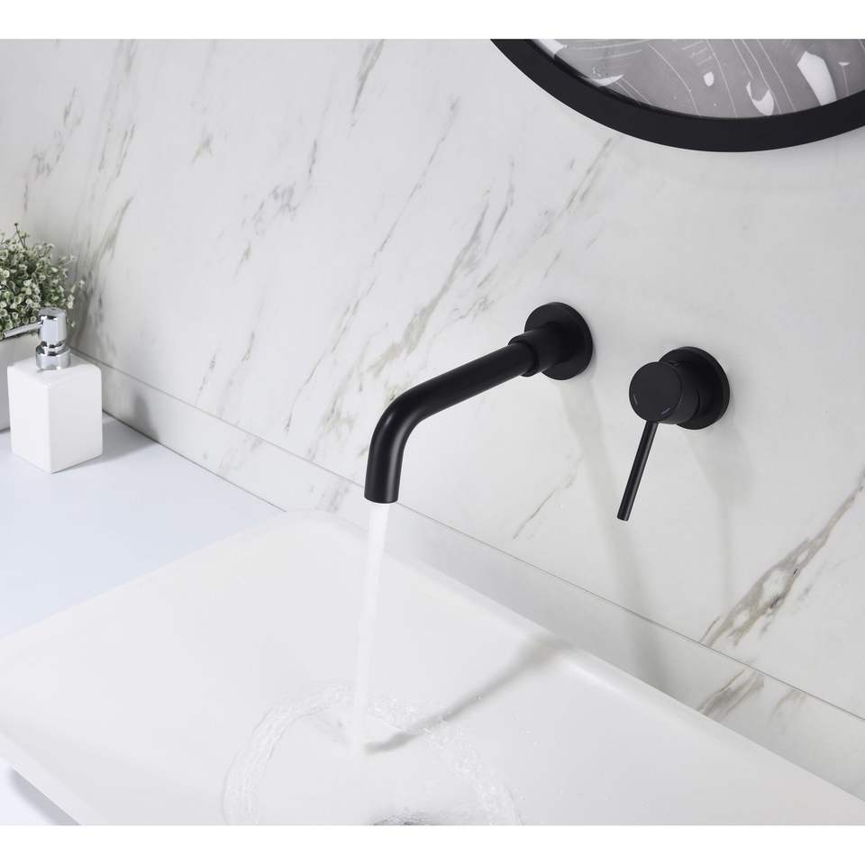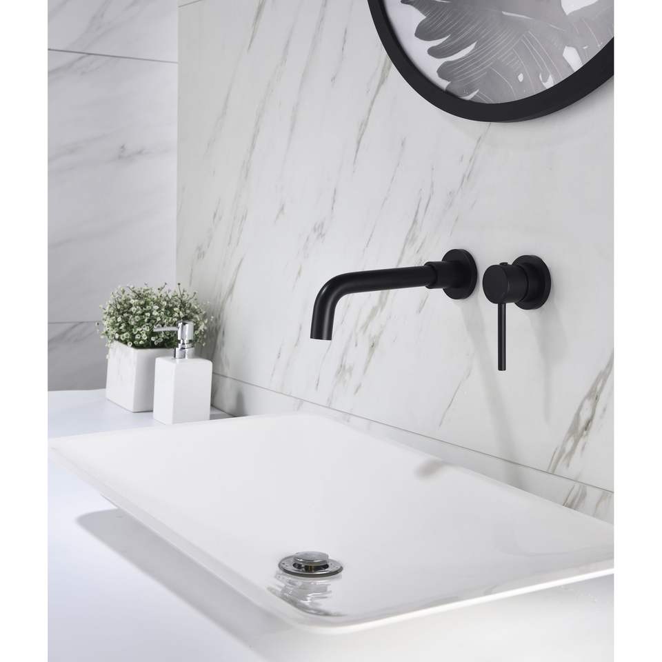 Wall Mounted Single Lever Handle Basin Faucet for Bathroom Sink Pop-Up Drain with No Overflow