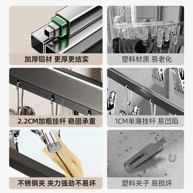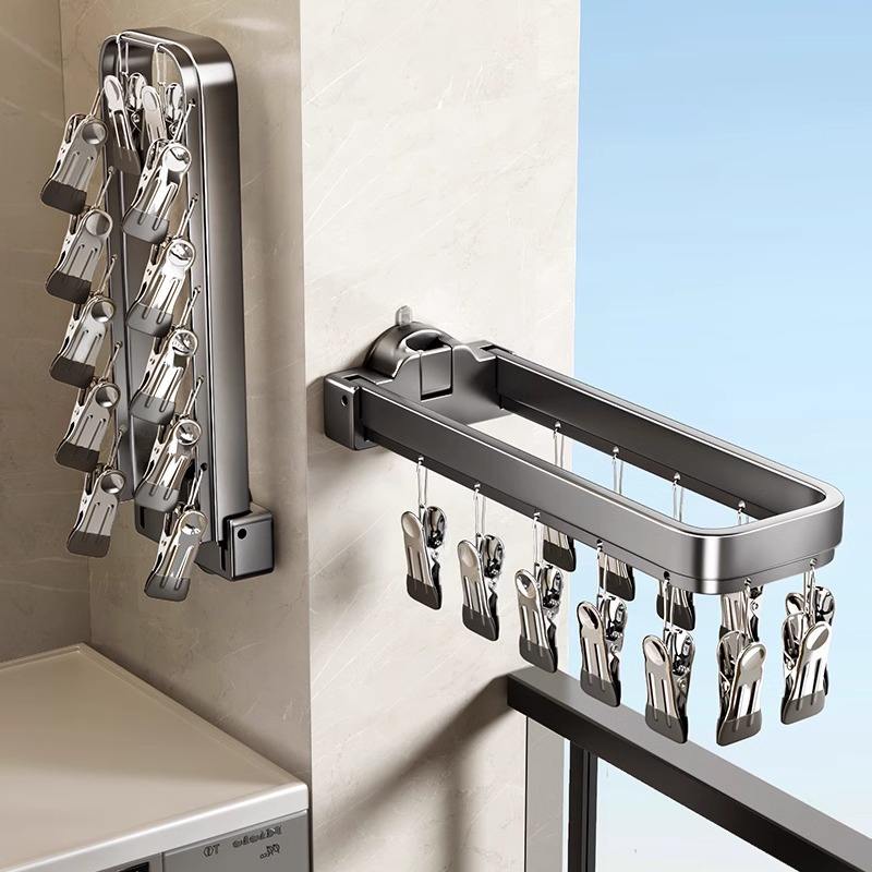 Séchoir à chaussettes mural avec pinces, type fixe rectangulaire, pour balcon et usage domestique