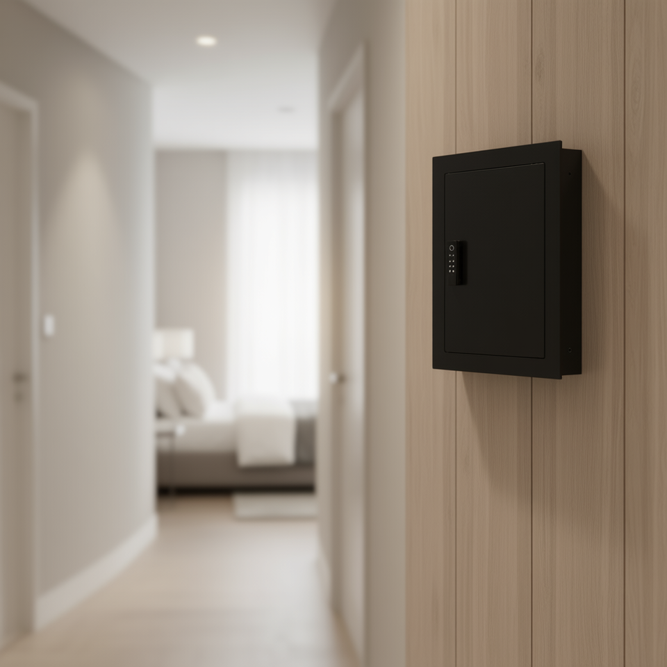 Coffre-fort mural avec scanner d'empreintes digitales Q235, en acier laminé à froid, avec étagères réglables, porte-clés pour argent et passeport
