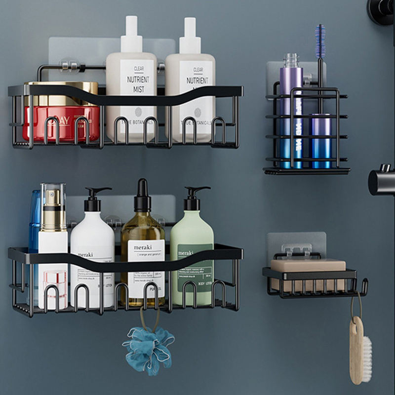 Support mural auto-adhésif pour toilettes, panier de douche, organiseur de savon, lot de 5 organiseurs de salle de bain pour hommes, organiseur de rouleaux de papier toilette