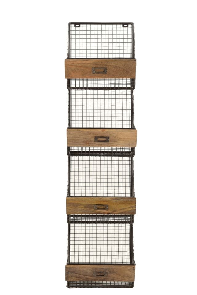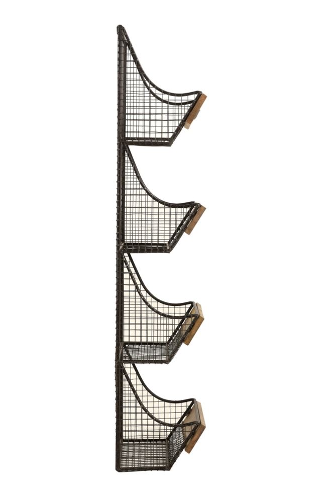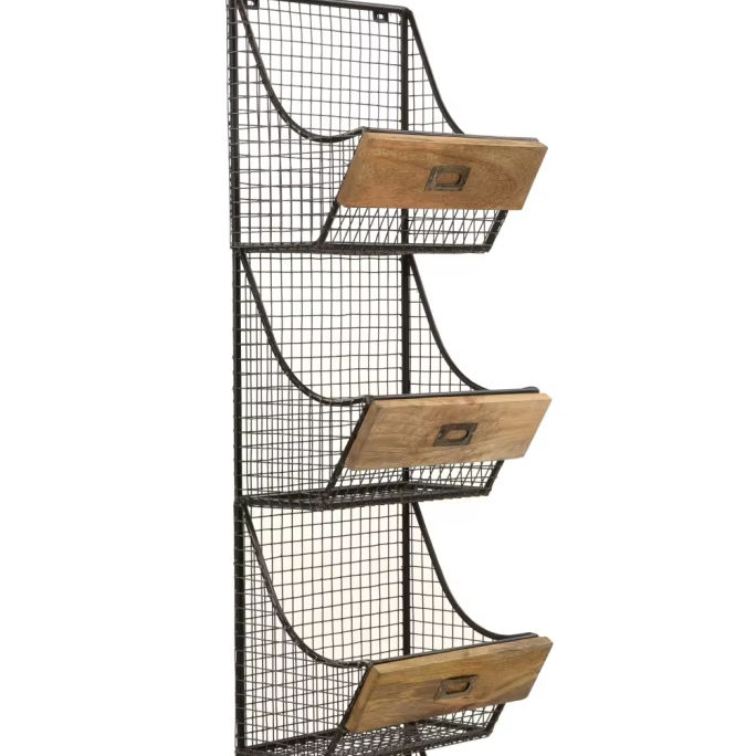 Étagère murale en fer/bois, porte-revues mural à quatre compartiments, en métal/bois de manguier, finition naturelle, prix de gros