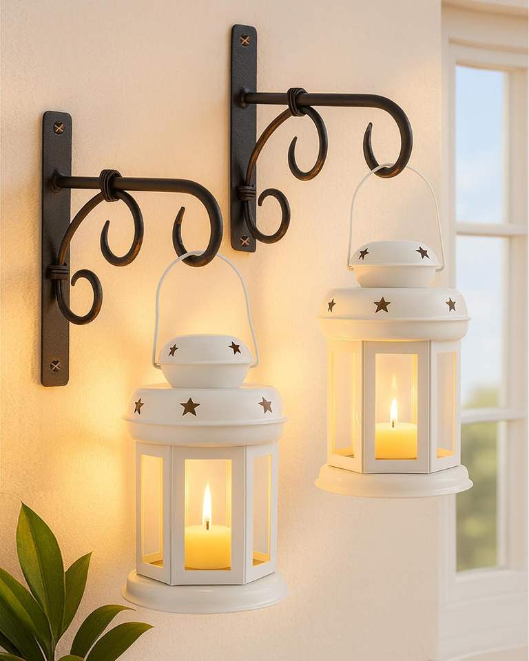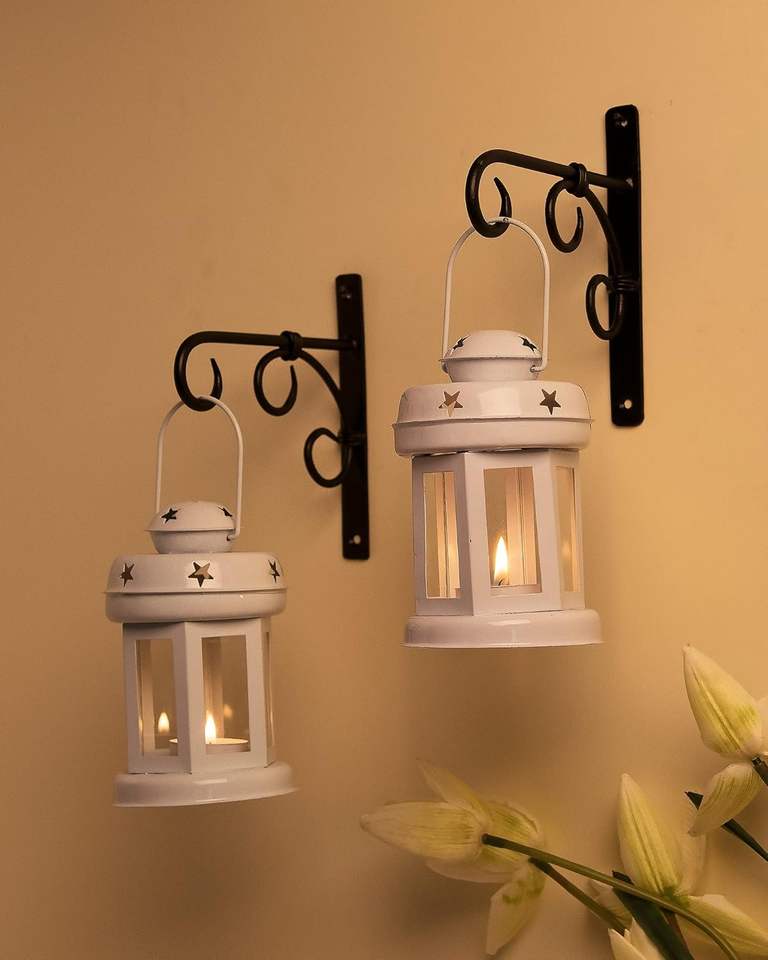 Ensemble de 2 lanternes murales en métal Wall Star Light, porte-bougies suspendus pour bougies chauffe-plat, décoration festive intérieure et extérieure, vente en gros à l'exportation