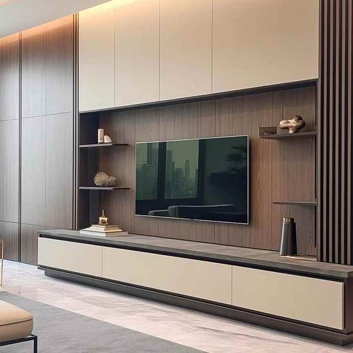 Unité murale meuble TV Design moderne Mobilier salon Support TV Meuble TV moderne en bois