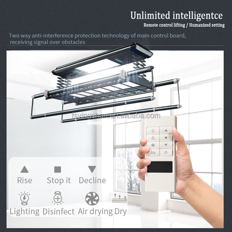 Étendoir électrique mural et de plafond avec télécommande en Aluminium, étendoir à linge en acrylique