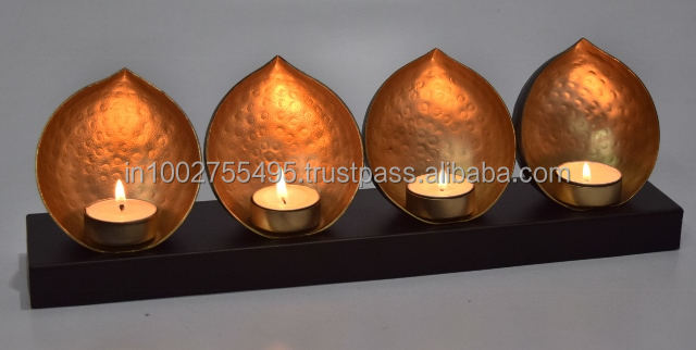 Porte-bougie chauffe-plat en métal noir, fait main, moderne, avec feuille d'or, petite décoration d'intérieur, thème Noël, marque IHA