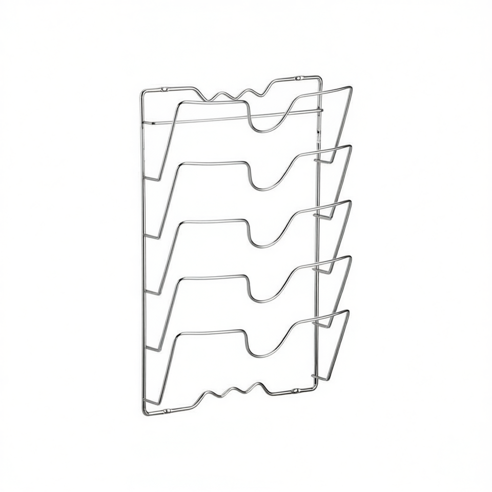 Étagère murale en acier inoxydable à 4 niveaux pour couvercles de casseroles, design minimaliste pour cuisine, métal poli