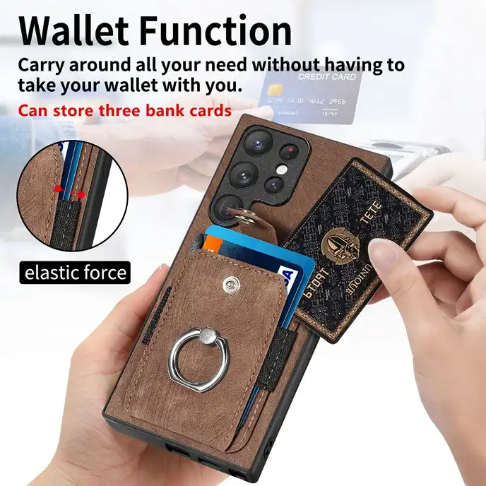 Étui portefeuille pour S23 Plus avec emplacements pour cartes et couvercle magnétique en PC, antichoc