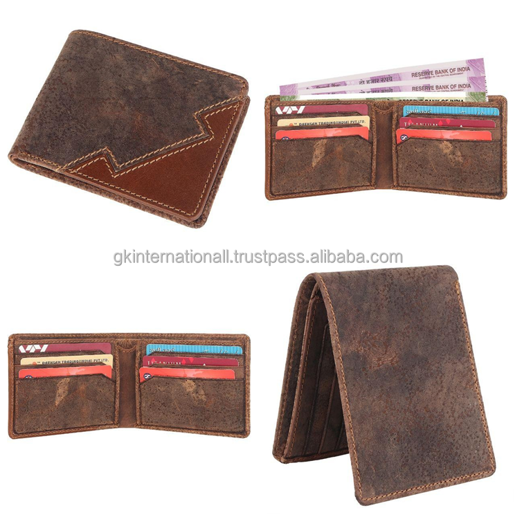 Portefeuilles Portefeuille à deux volets en cuir de vachette véritable de haute qualité pour hommes Fabriqué en Inde Toutes les couleurs et personnalisation disponibles