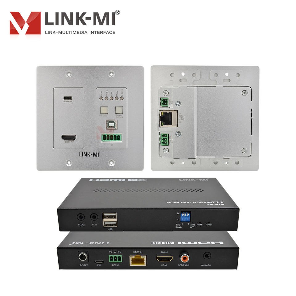 Kit d'extension murale vers boîtier jusqu'à 100 m avec entrées HDMI + Type-C et prise en charge KVM 150 m sous 1080P, 100 m sous 4K60Hz