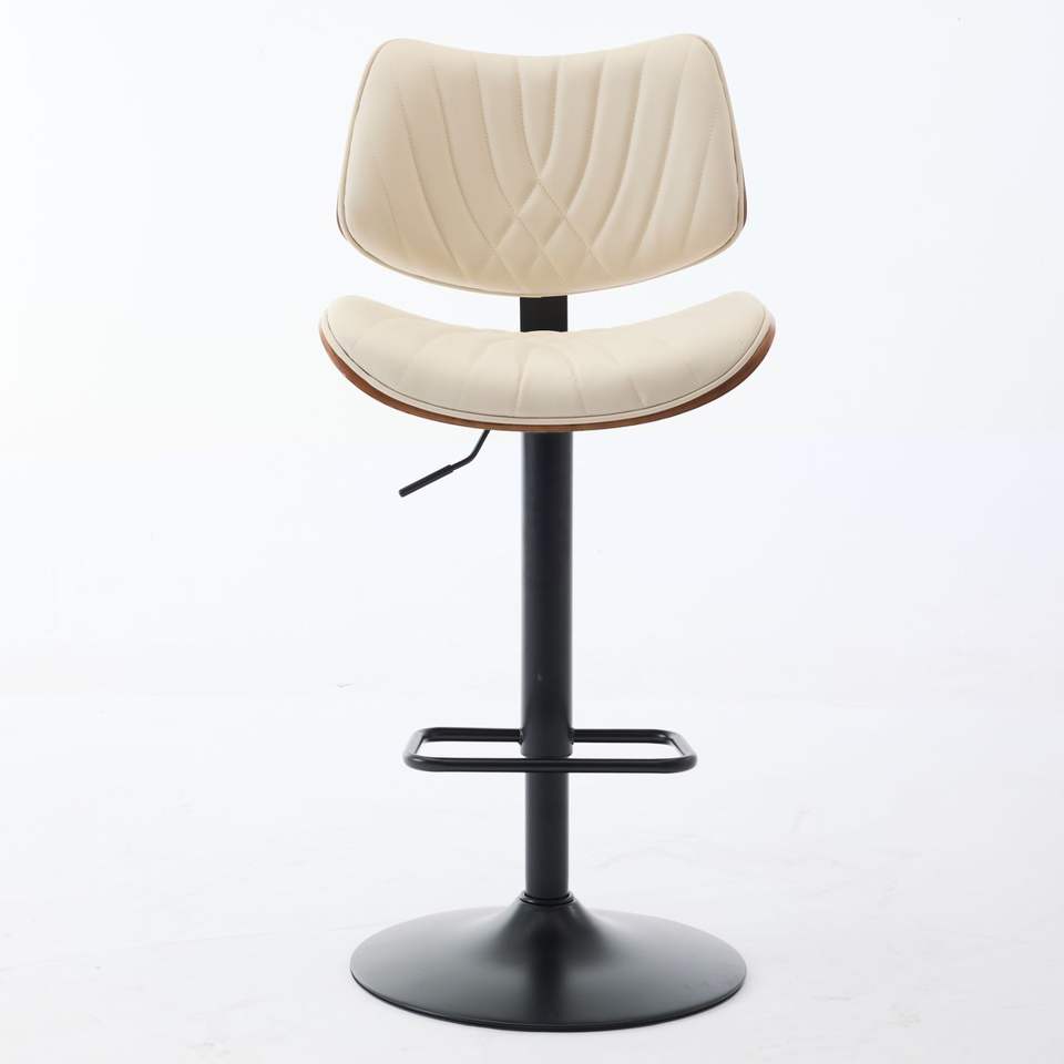 Walnut Bentwood Bar Stools Mid Century Modern Adjustable Counter Height Black Leather Upholstered 360 Degree Swivel Bar Chairs