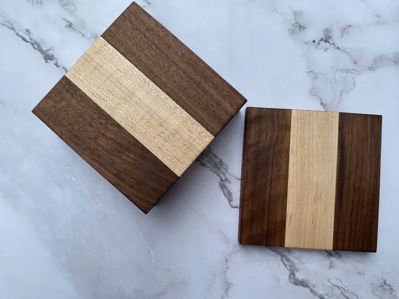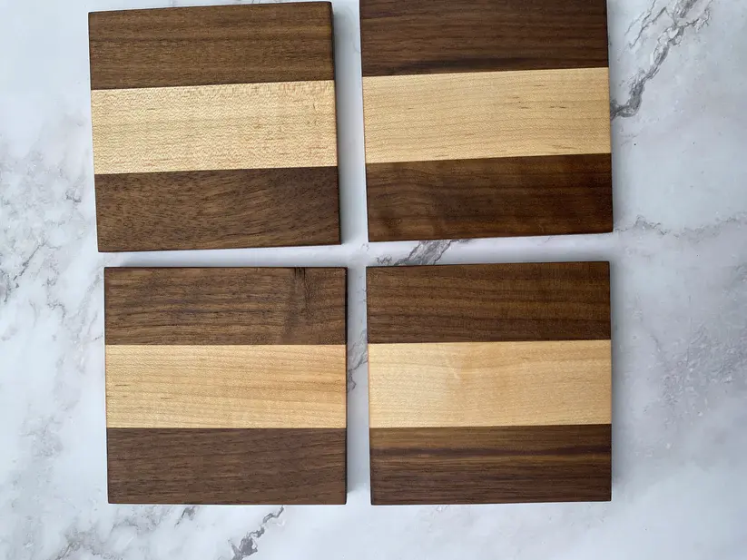 Sous-verres en noyer Ensemble de sous-verres en bois fabriqués à la main Design géométrique Sous-verres en bois de noyer et d'érable Protection de table