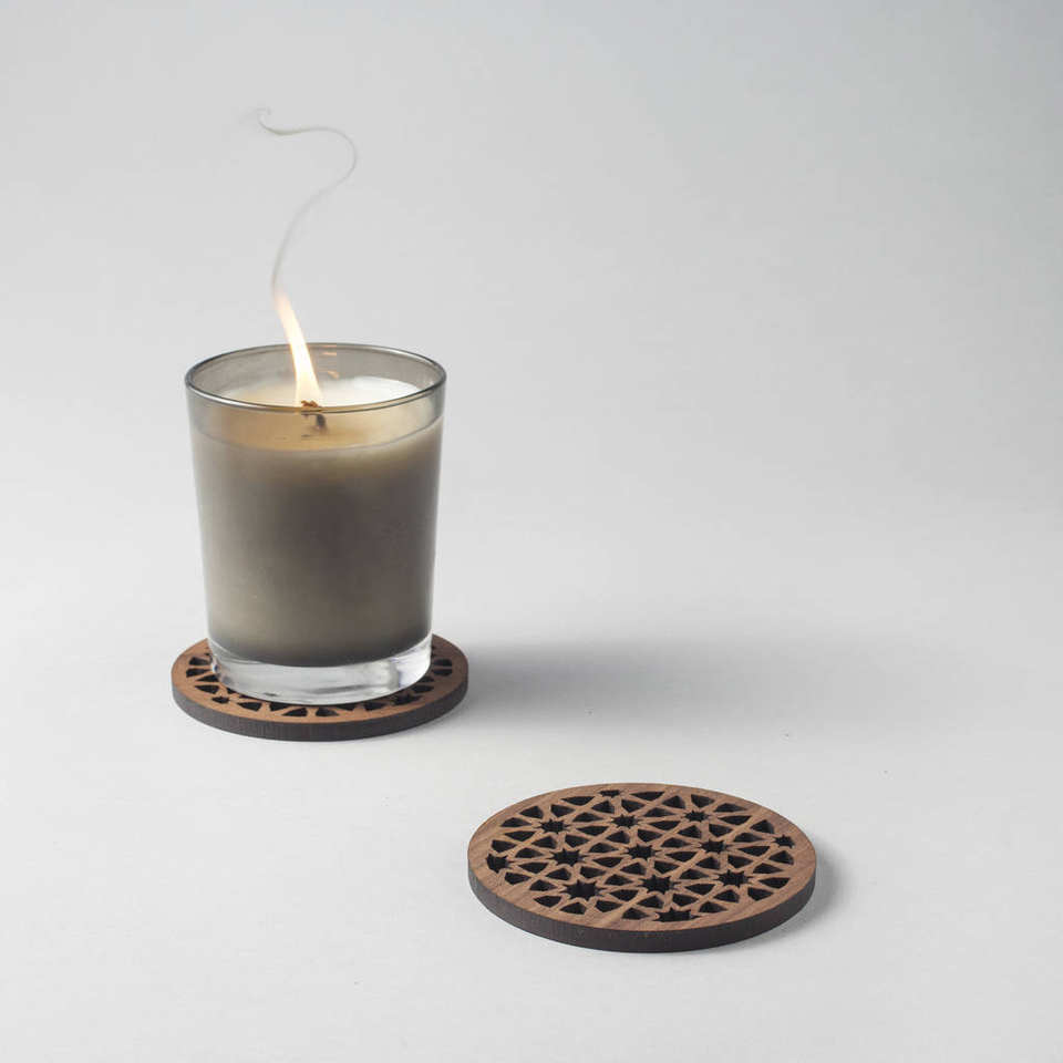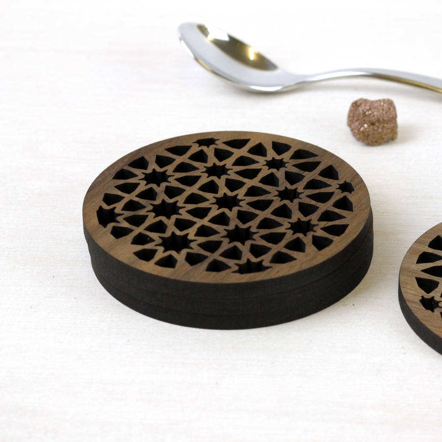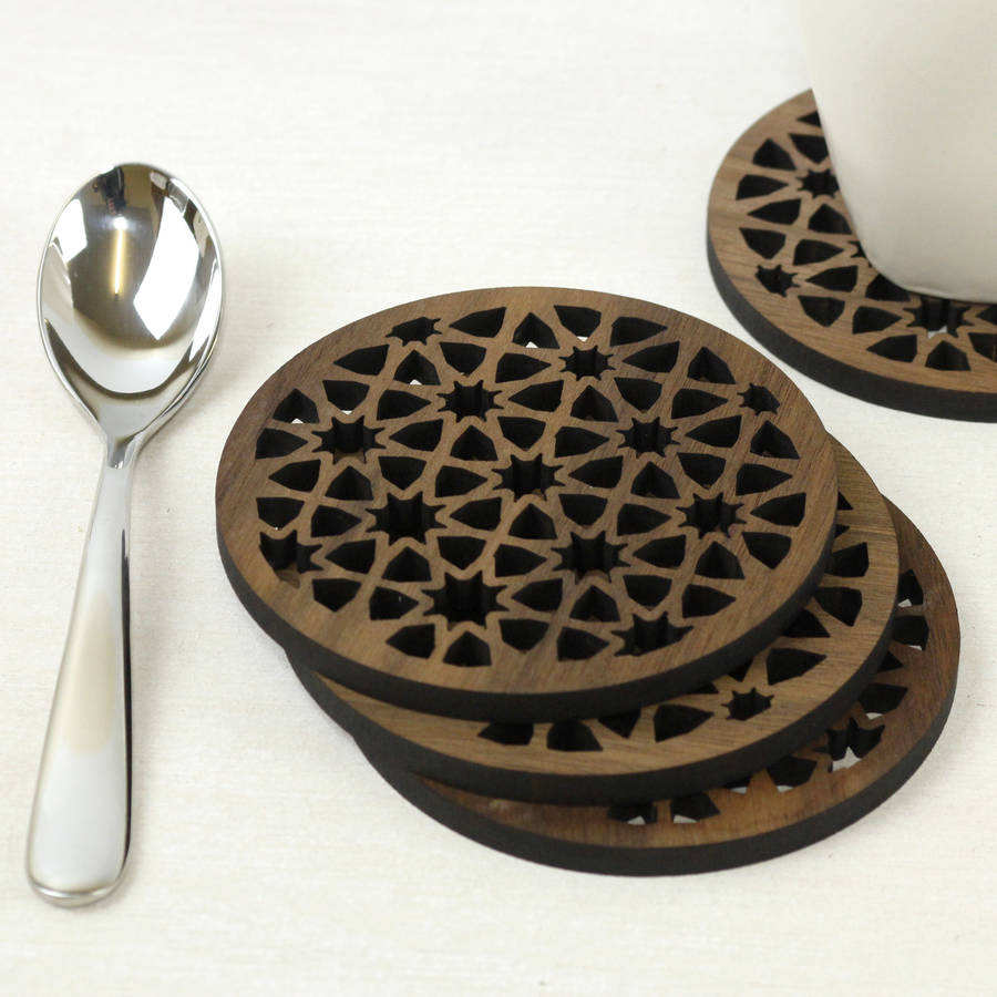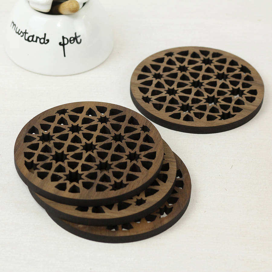 Walnut Coasters Wooden Drink Coasters Set of Six Digital Viraaj Moroccan Pattern Digital Viraaj Wooden Tea Coaster