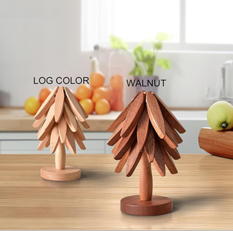 Noyer Cuisine Table Pliable Bois En Bois En Forme D'arbre De Noël Forme D'arbre Boisson Tasse Napperon Tapis Dessous De Verre Décor Dessous De Plat Ensemble