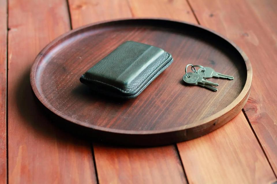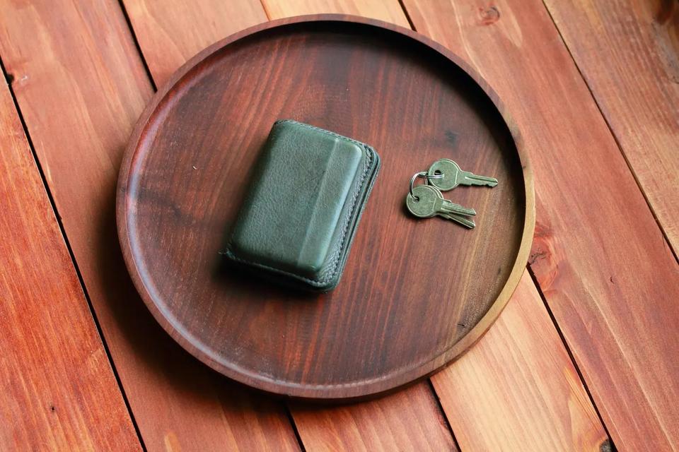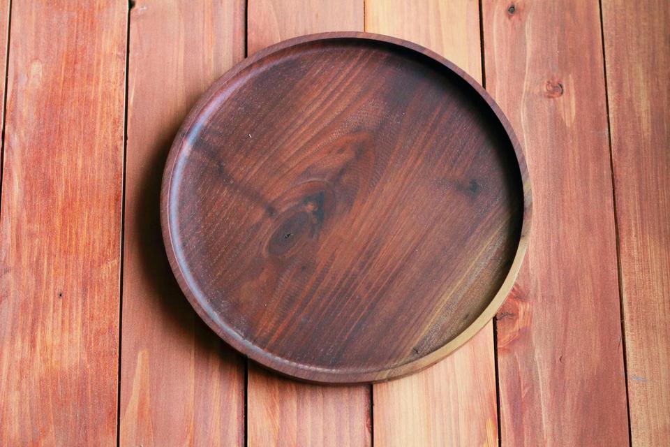 Plateau rond en bois massif de noyer 10'' - Finition laquée - Plateau de rangement portable - Utilisation moderne pour la cuisine et le bureau - Décoration minimaliste pour la maison