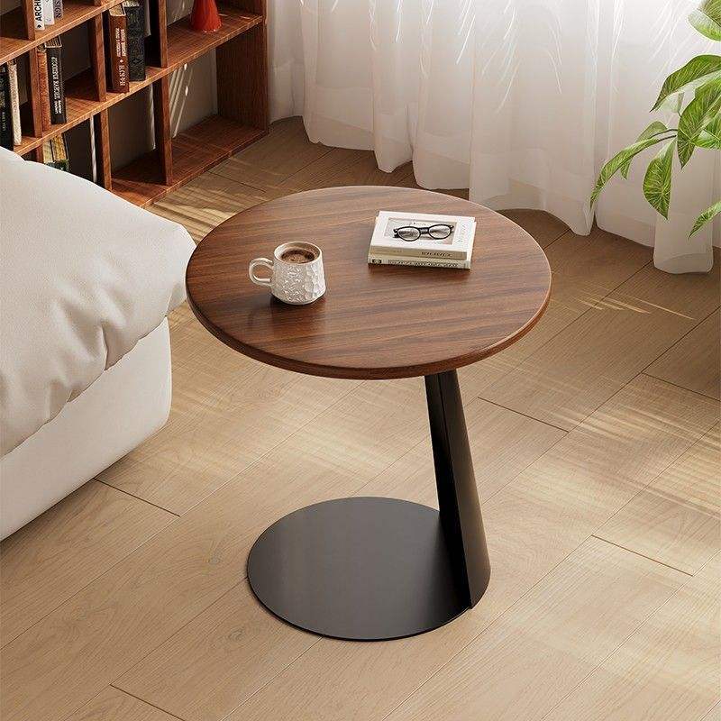 Table d'appoint ronde en bois massif de noyer, design minimaliste, pour salon, utilisation près du canapé