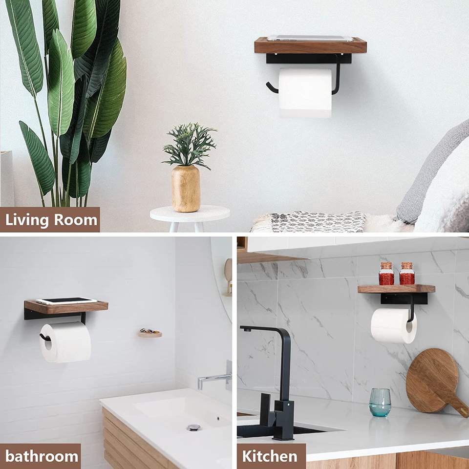Porte-papier toilette en noyer avec étagère de rangement pour meuble de salle de bain Distributeur de papier et de rouleaux de qualité hôtelière