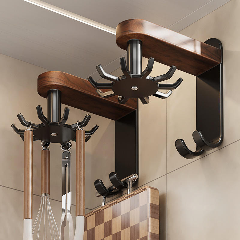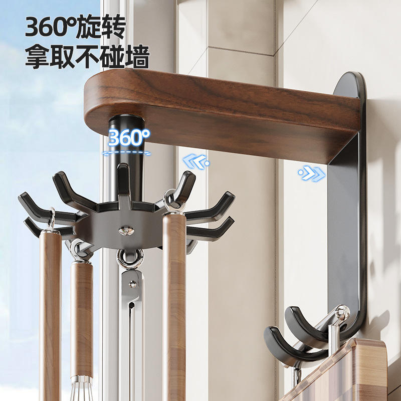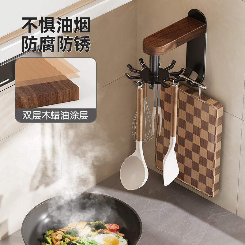Support mural rotatif en bois de noyer pour spatules et planches à découper, organisateur multifonctionnel pour cuisine