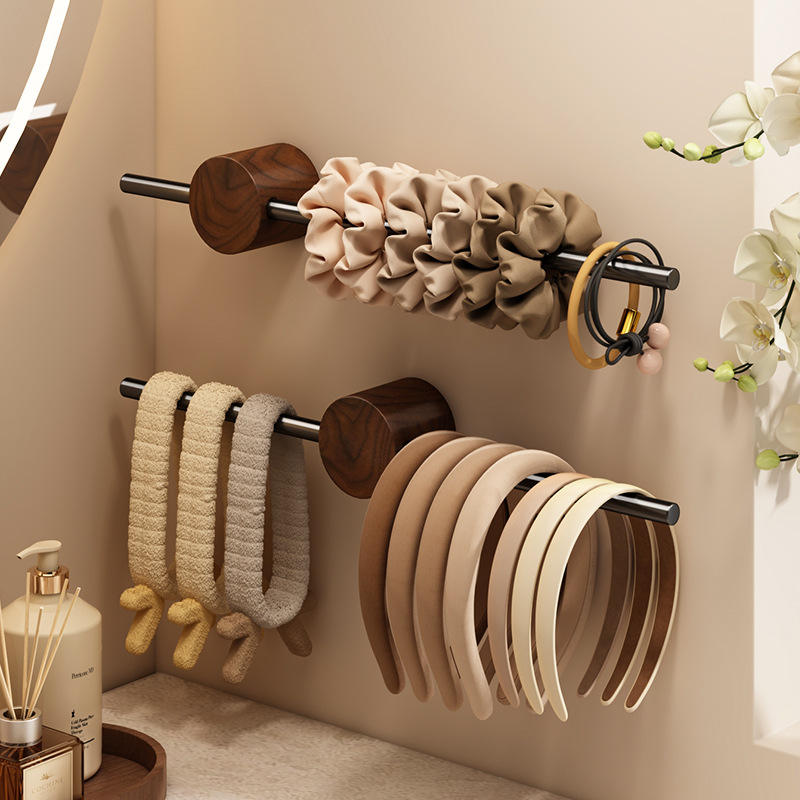 Porte-serviettes en bois de noyer, 2 barres, support de rangement auto-adhésif pour salle de bain, étagère de cuisine, 40, 50, 60 cm