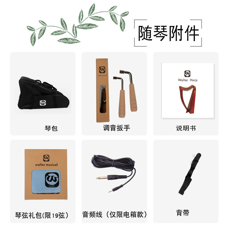 Walter Fabricant Harpe Introduction Irish Small 19-string Portable Small Beginners Instrument Semitone Key