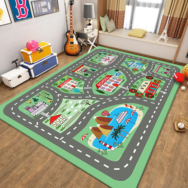 Tapis de jeu rectangulaire pour enfants Wan Xinlong, motif voitures sur route, antidérapant, éducatif, pour chambre à coucher, salon, usage enfant