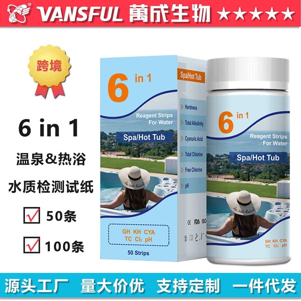 Wancheng Biotechnology Hot Spring 6 In 1 Water Test Strips 50 100 Pcs Multi Parameter Detection For Spa Bath