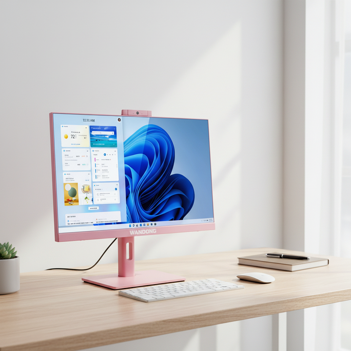 Ordinateur de bureau tout-en-un Wandong Factory 23,8 pouces, RAM DDR4, design compact, processeur Core i5/i7/AIO, SSD+HDD, Windows 11, nouvelle génération, faible consommation d'énergie.