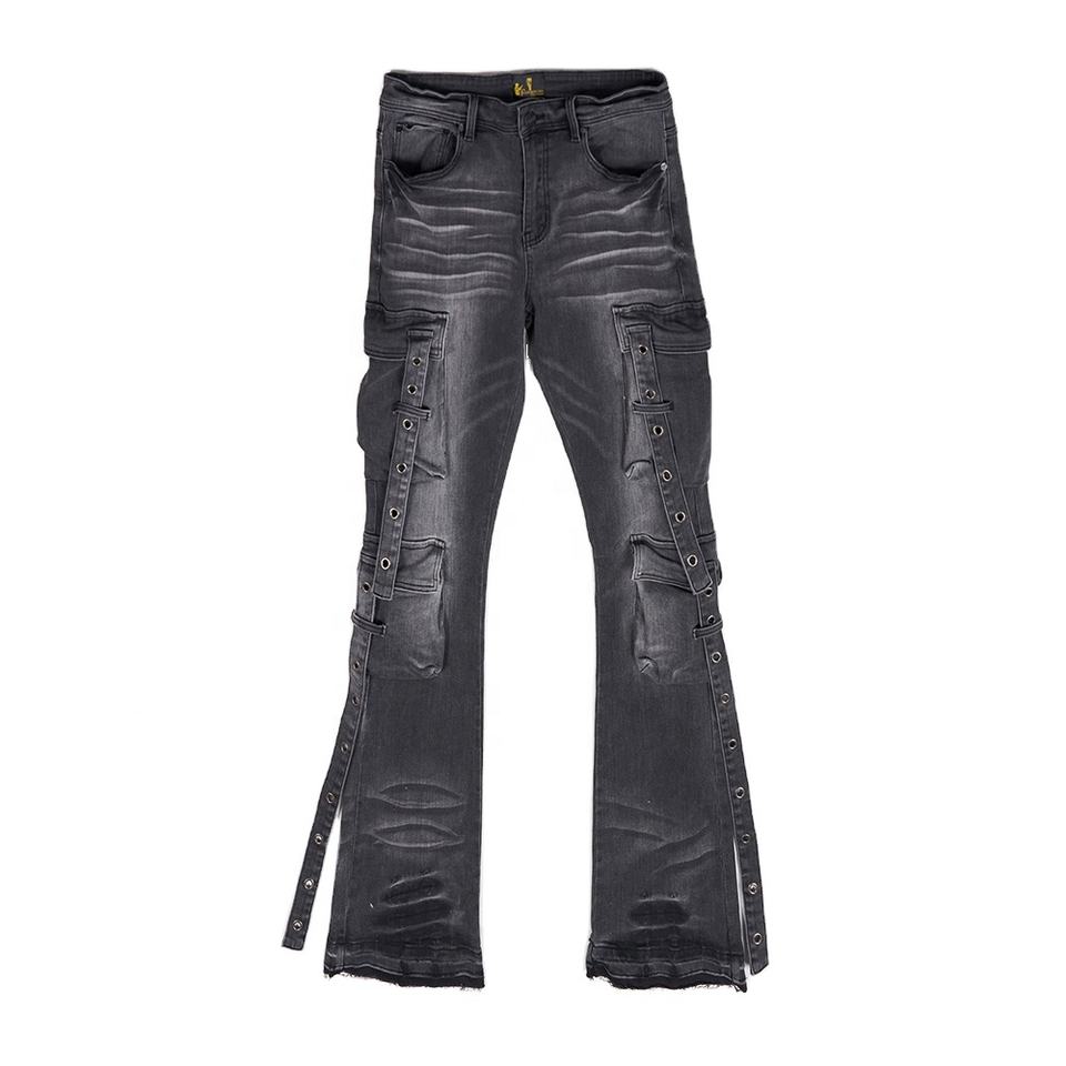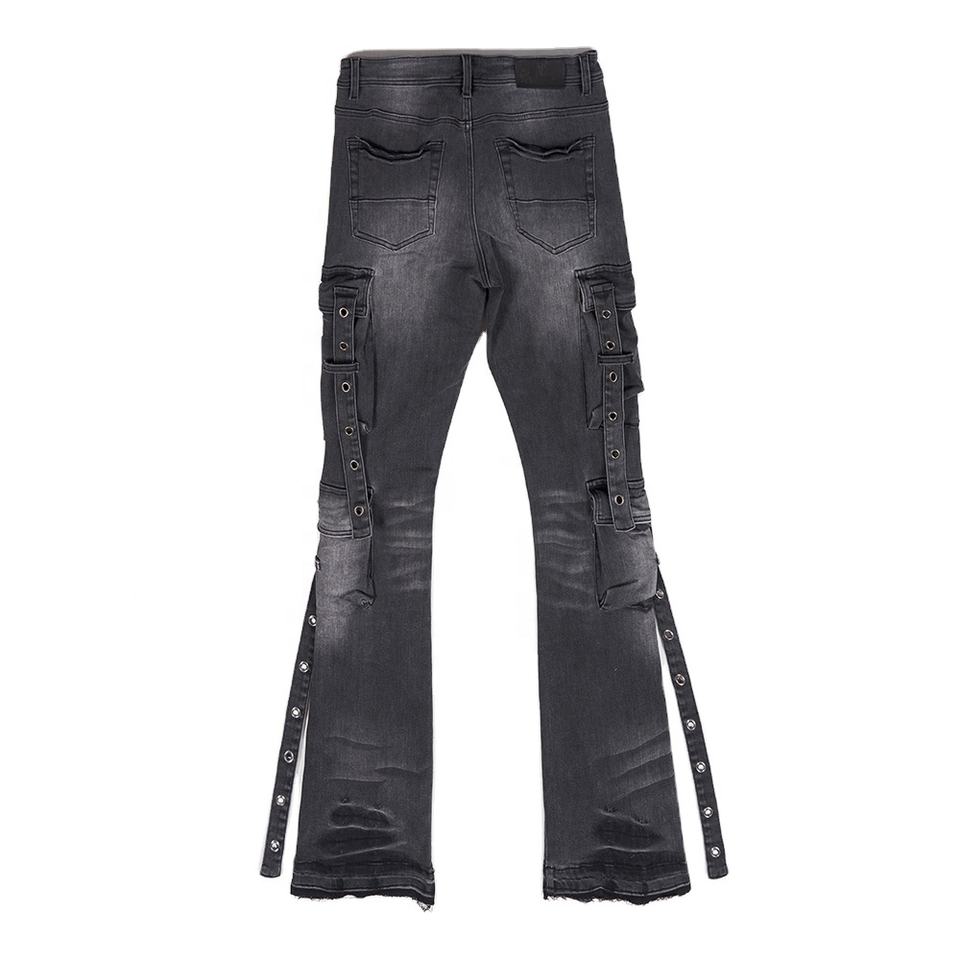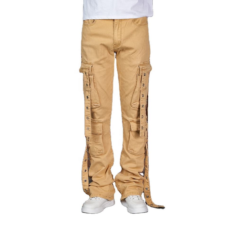 Jean en denim évasé taille mi-haute respirant pour homme Wangsheng, grande taille, style hip-hop anglais, coloré, 6 poches, délavé, personnalisé