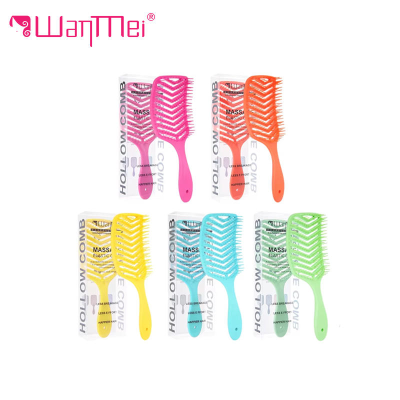 Peigne à cheveux en forme de V, creux, style moelleux, manche droit, massage doux, lisse, démêlant, brosse à cheveux, marque Wanmei, couleur personnalisée