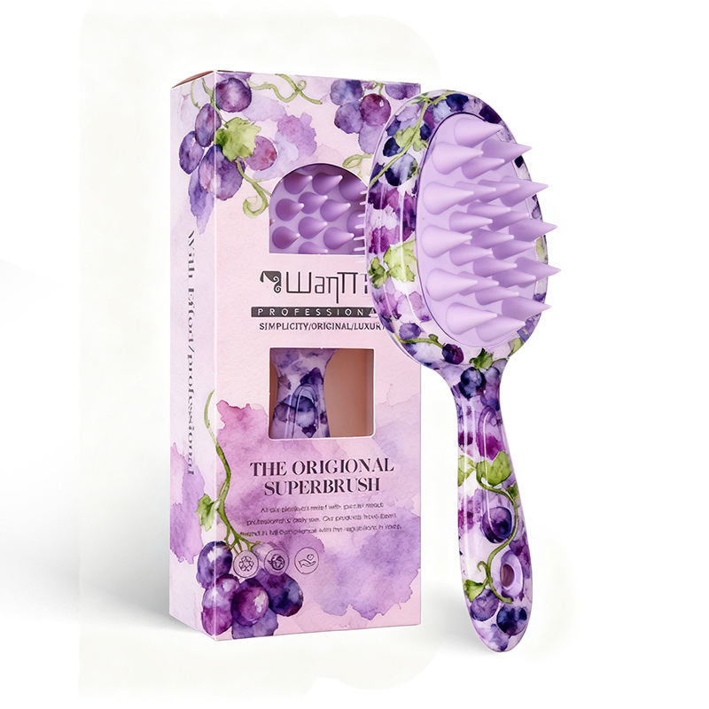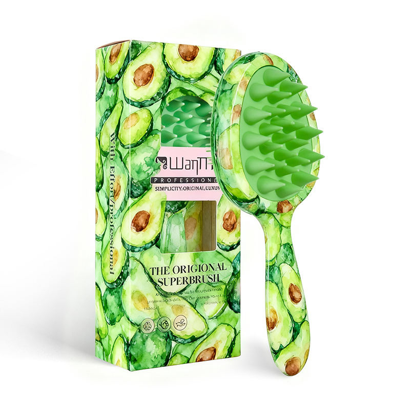 Brosse à cheveux double face avec motif de fruits, logo personnalisé Wanmei, coffret cadeau de luxe, OEM et ODM à guichet unique, brosse à cheveux creuse