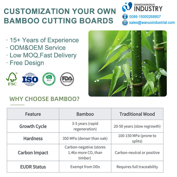 Planche à découper en bois de bambou personnalisée WanuoCraft avec logo gravé, blocs à découper en bois