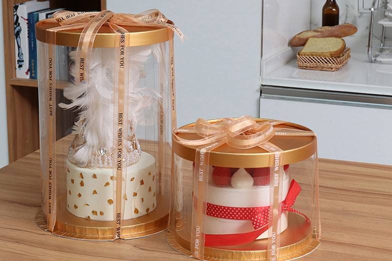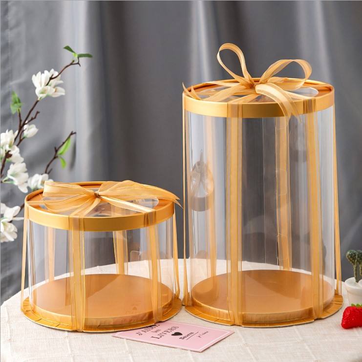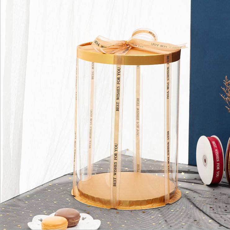 Boîte à gâteau ronde transparente avec couvercle et fond en papier couleur or, nouvelle arrivée Wanze Package, pour emballage de boulangerie