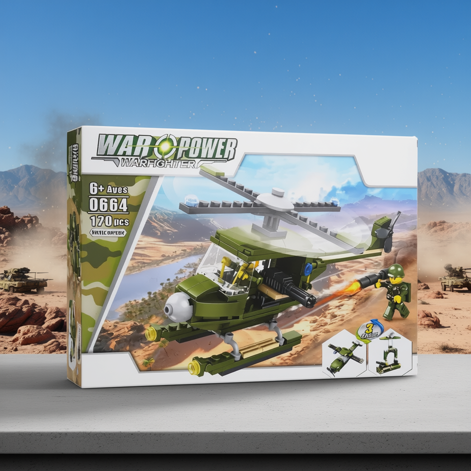 War Power Helicopter Building Blocks 170Pcs Military Toy For Kids Ages 6+
