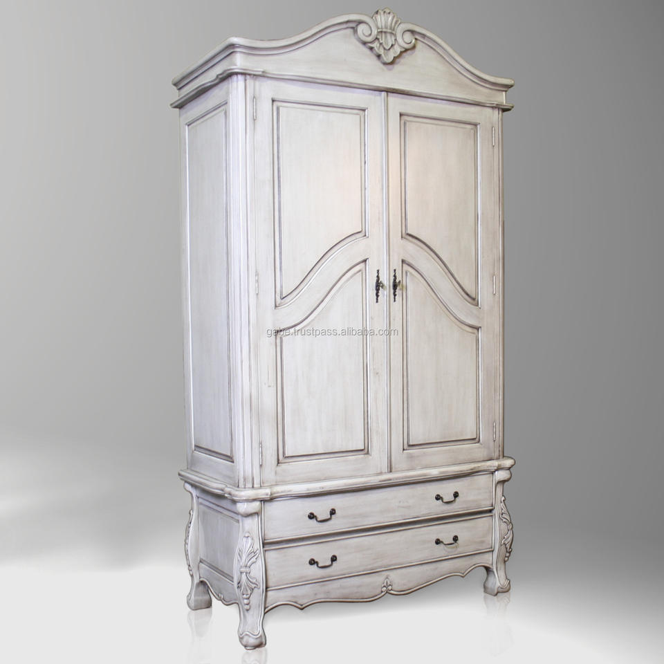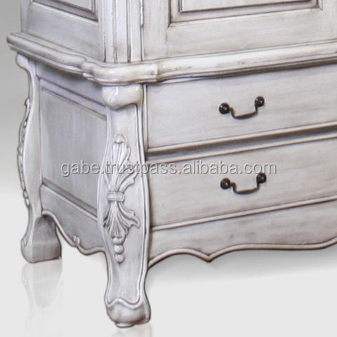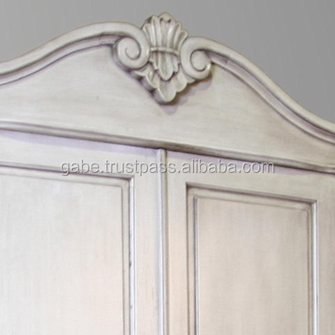 Armoire classique de style français, finition en bois d'acajou blanc vieilli