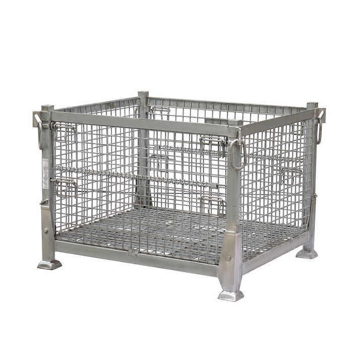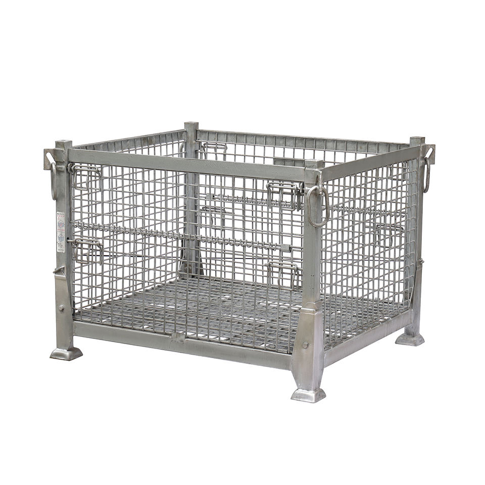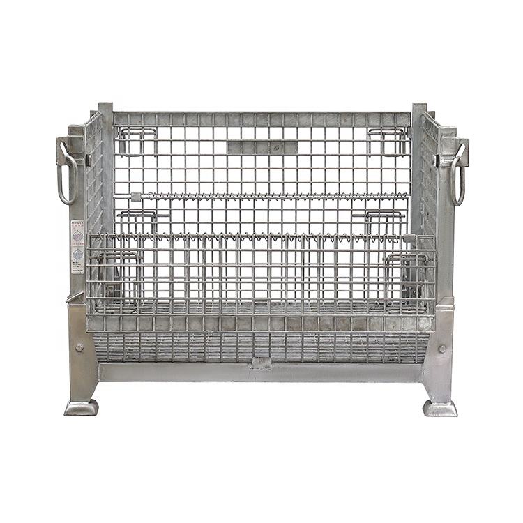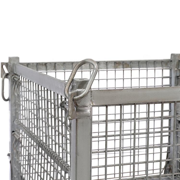 Logistique en entrepôt boîte en treillis métallique empilable chariot à panier en treillis métallique pliable boîte-palette métallique en acier de levage galvanisé