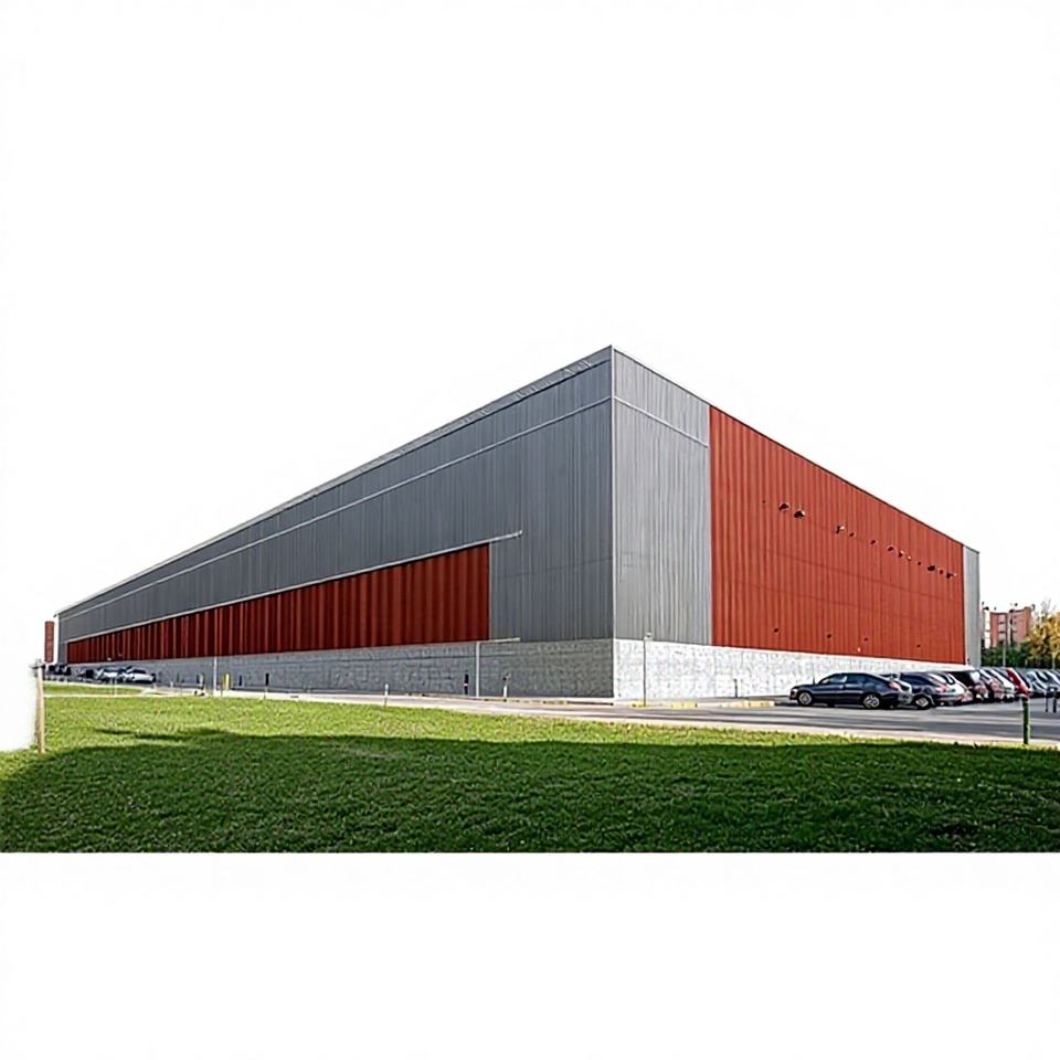 Structure en acier préfabriquée conforme aux normes de sécurité internationales, pour stockage, avec éclairage intégré pour signalisation d'issue et fonctions de soudage et de découpe.